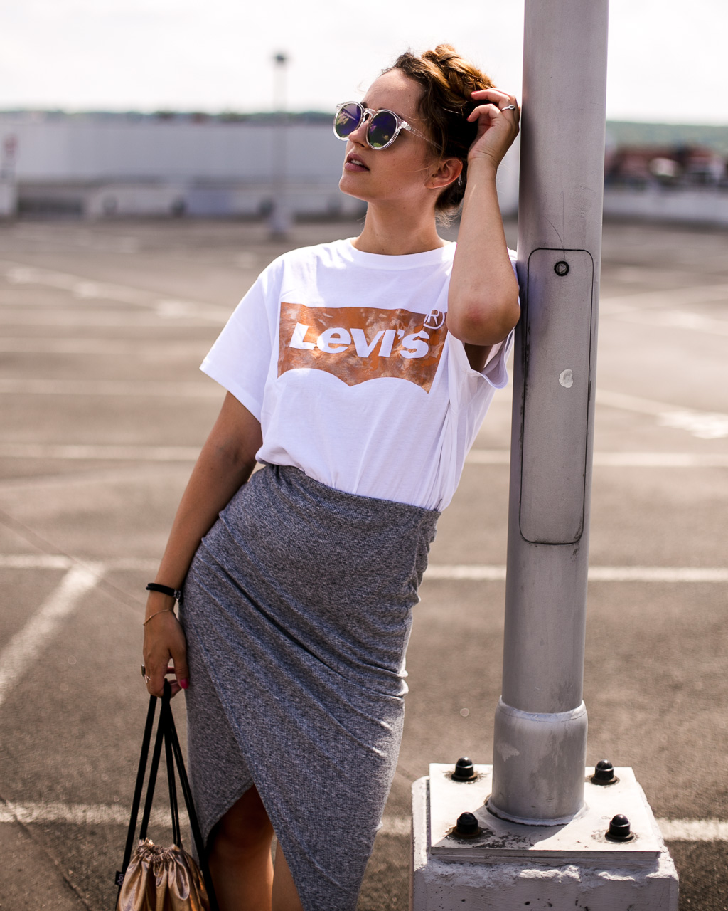 Um den Bleistift-Rock auch für den Alltag zu stylen, gibt es nicht viel zu beachten. Wichtig ist es, auf die klassischen Elemente wie Blazer, Bluse und Absatzschuhe zu verzichten. Die lassen den Look schnell streng und bussineslike aussehen. Greift lieber zu eurem Lieblingsshirt oder Pullover, sowie bequemen Schuhen.