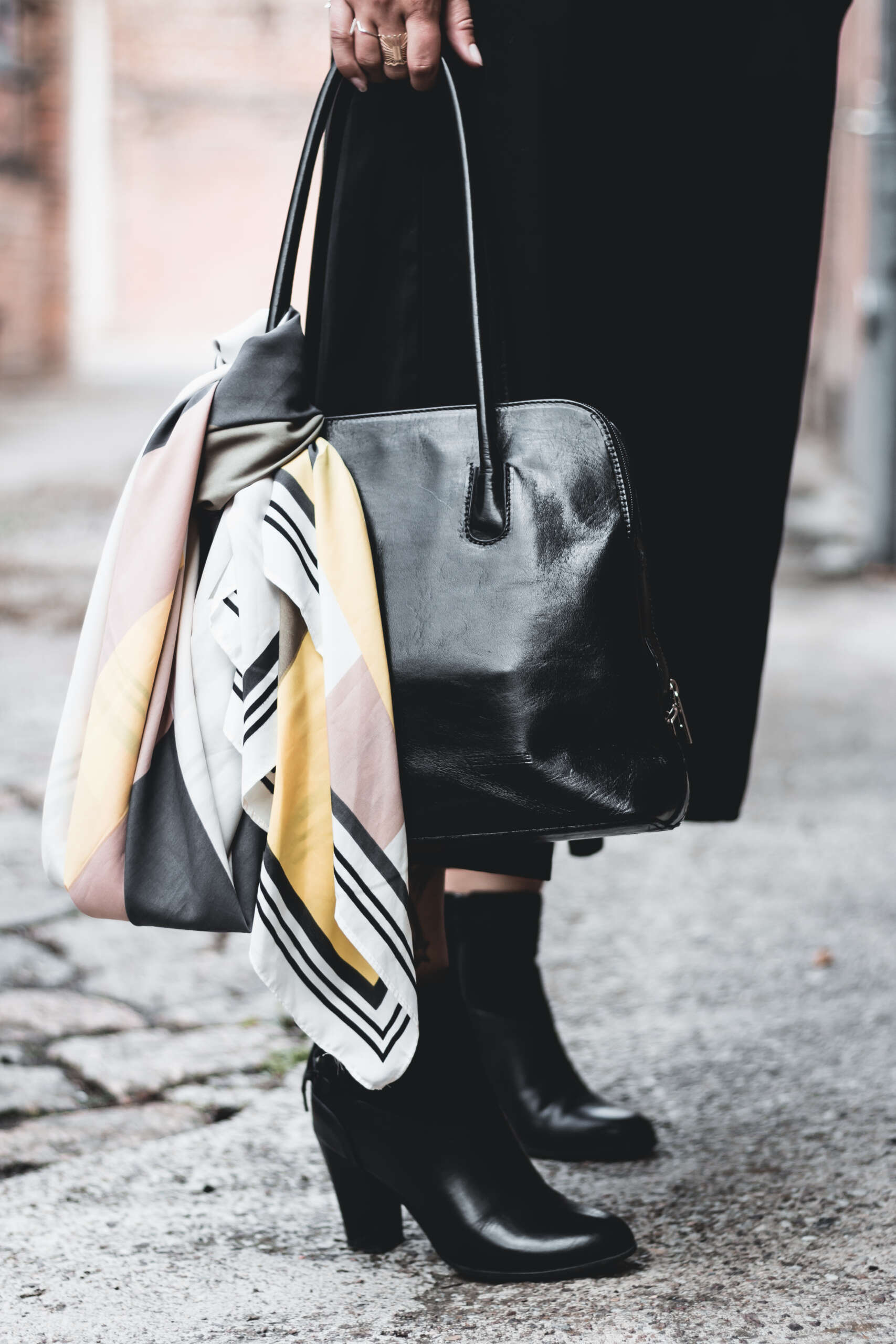 Tuch für Upgrade Tasche – Einfach eine schlichte Tasche, am besten einfarbig, mit einem dazu passenden Tuch upgraden. Hierfür das Tuch einfach um den Henkel der Tasche binden und fertig ist eure neue Tasche!