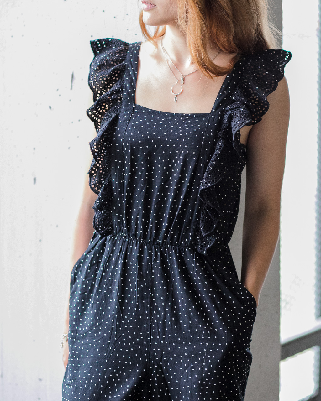 Jumpsuits sind einfach genial, denn abgesehen davon, dass man mit nur einem Teil komplett angezogen ist, sind sie auch super luftig und bequem. Perfekt für den Sommer also! Besonders gut gefallen mir dieses Jahr natürlich gepunktete Jumpsuits, aber auch mit Blumenprint oder Statement-Streifen seid ihr auf der richtigen Seite! Wichtig ist nur, dass der Jumpsuit gut sitzt und nicht zu lang oder zu kurz ist. Ich als kleine Person hab oft das Problem, dass sie am Boden schleifen. Somit hab ich mich besonders gefreut, als ich dieses tolle Stück mit 7/8 Bein-Ausschnitt entdeckt habe.