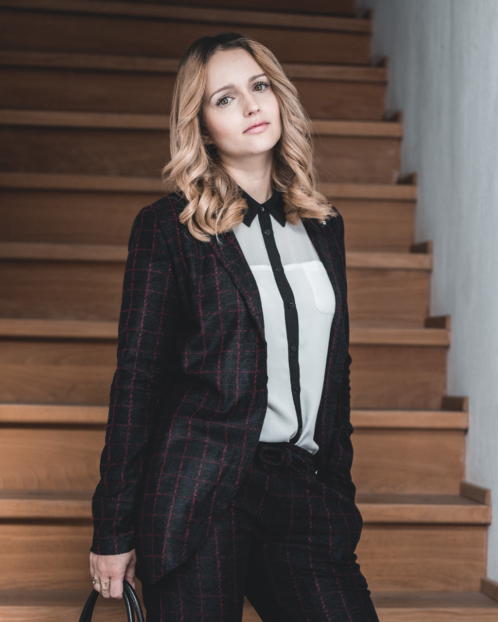 Ein Trend, in den ich mich spontan schock verliebt habe : karierte Anzüge a la Girlboss! Und daher gibt es noch einen weiteren Power-Look. Diesmal ein rot-karierter Gesamtlook von Rich&Royal, mit schwarz-weißer Bluse und schwarzer Tasche fühlt man sich definitiv cool. Dieser starke Look gibt jedem etwas Selbstbewusstsein, einfach austesten:  ob nun einfarbig oder eher bunt – alles ist momentan erlaubt! Kombiniert mit Bluse oder T-Shirt wirkt es auch lässiger und ist ebenfalls super geeignet für den Alltag.