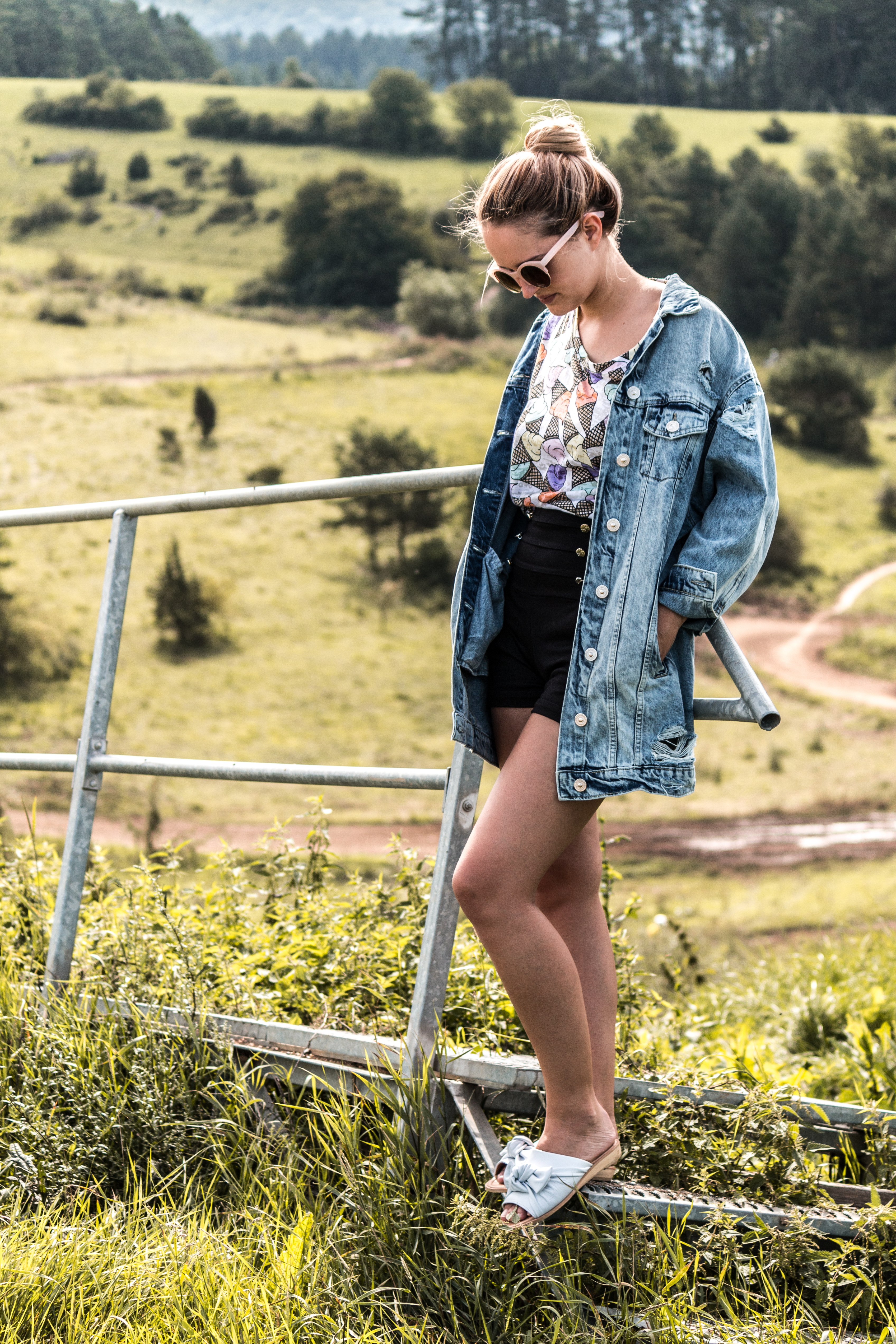 img_0511Wir sind natürlich mit unserem Bus unterwegs und haben hier übernachtet. Ich finde das heißt aber lange nicht das ich in meinen schlimmsten Schlapper-Klamotten raushole, nur weil ich campe … jedoch sind Absatzschuhe auch etwas too much! Ich mach mir meist vorher Gedanken, was ich anziehe, da der Platz begrenzt ist und mein Freund durchdreht, wenn ich immer meinen halben Kleiderschrank mitnehme 😜 Daher gibts ein lässig, cooles Outfit mit Oversize Jeansjacke und Highwaist Shorts, passend zur etwas rauheren Umgebung! Mein absolutes Favorit-Teil, dass noch definitiv in anderen Kombinationen wieder zu finden sein wird… Ich liebe einfach diese Jeans-Jacke! Tiffy