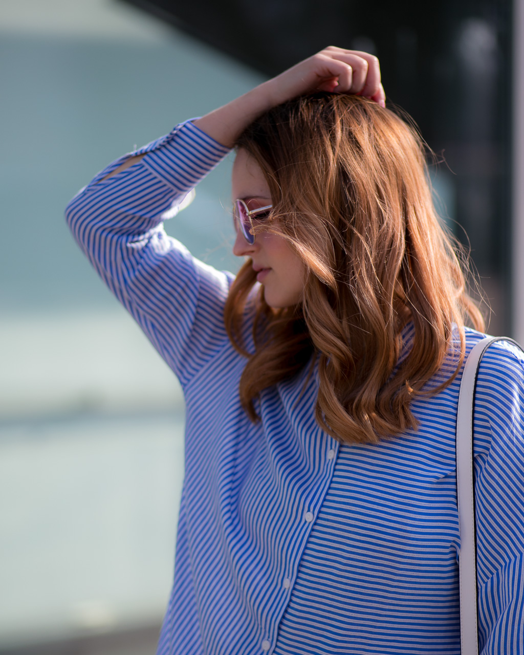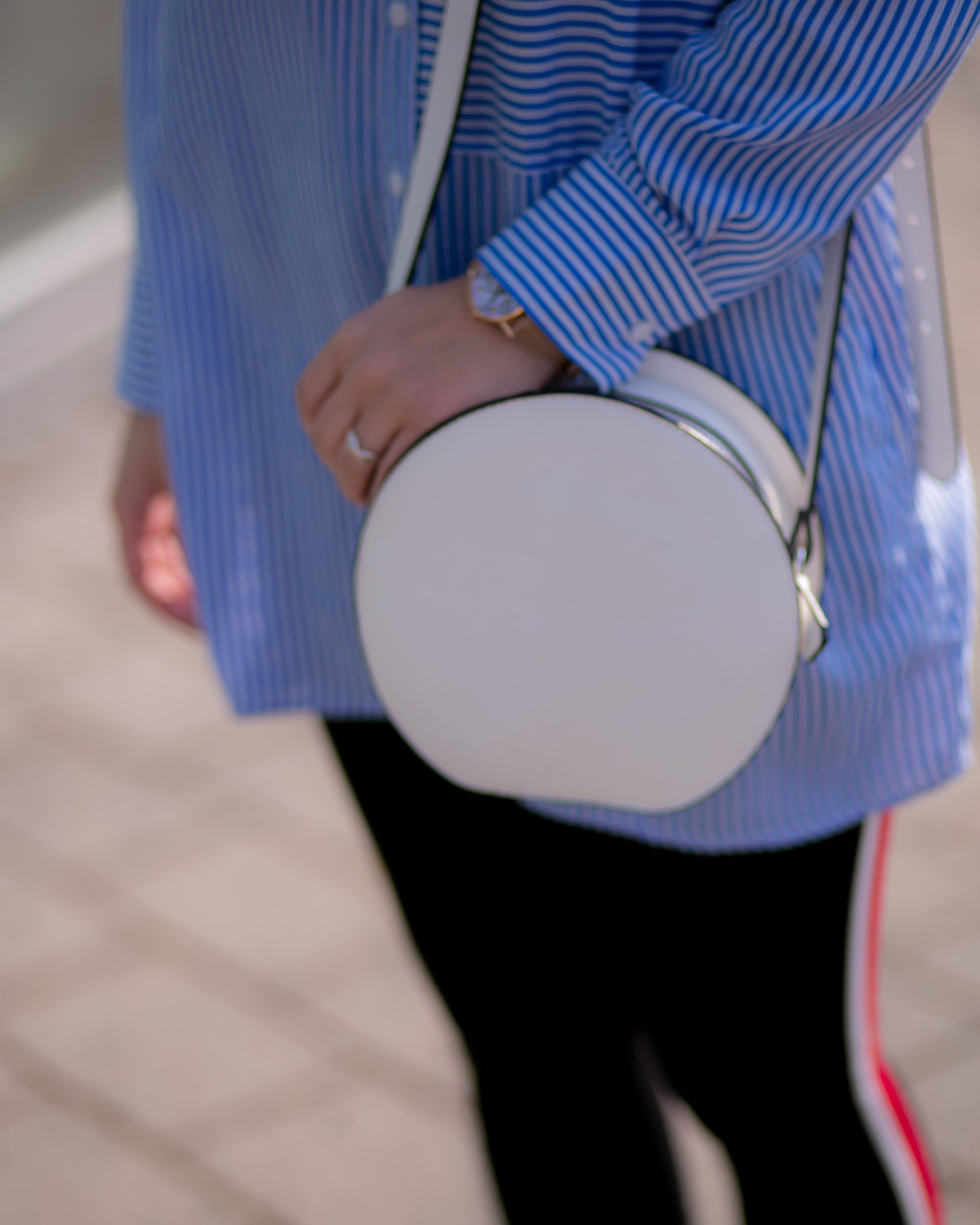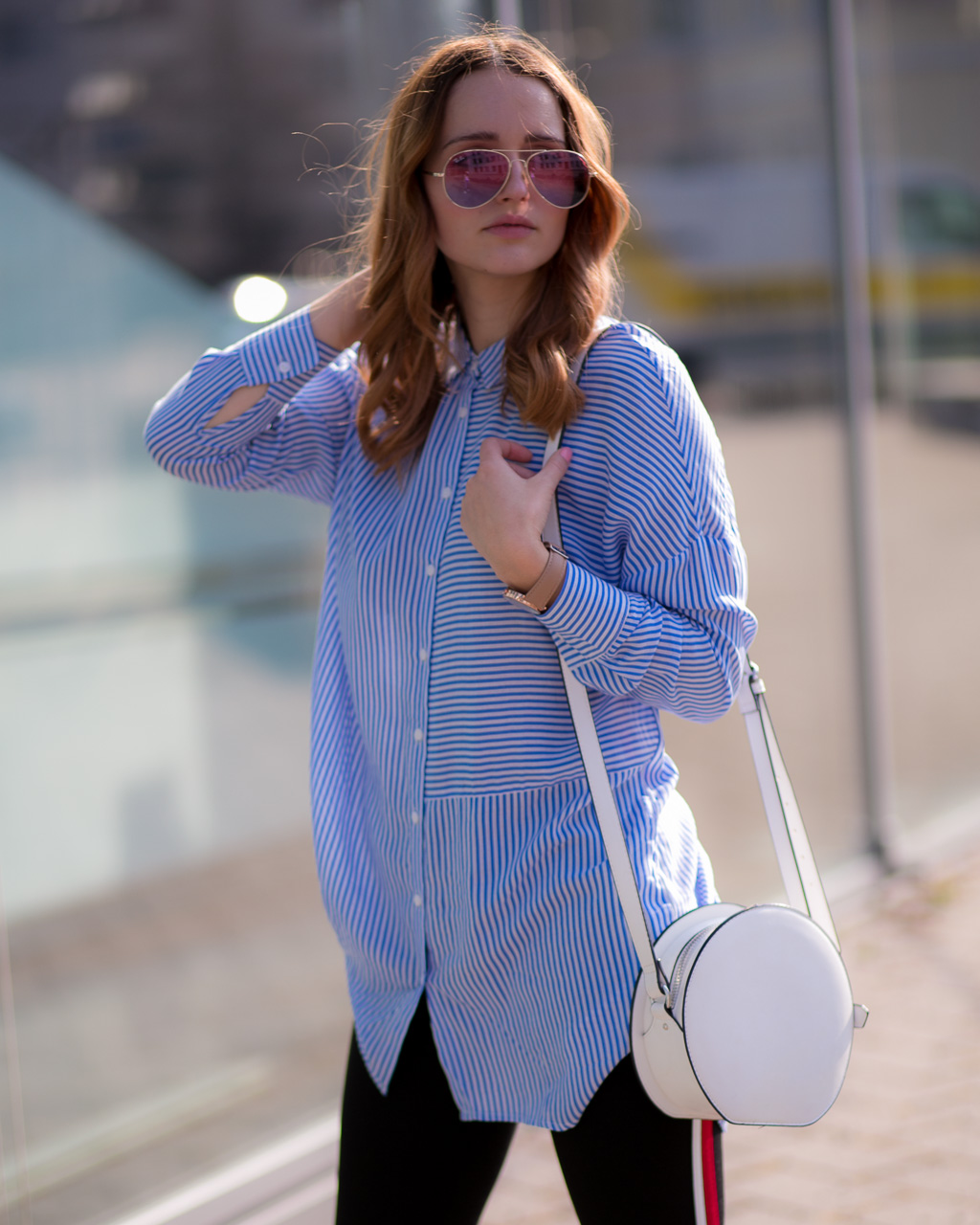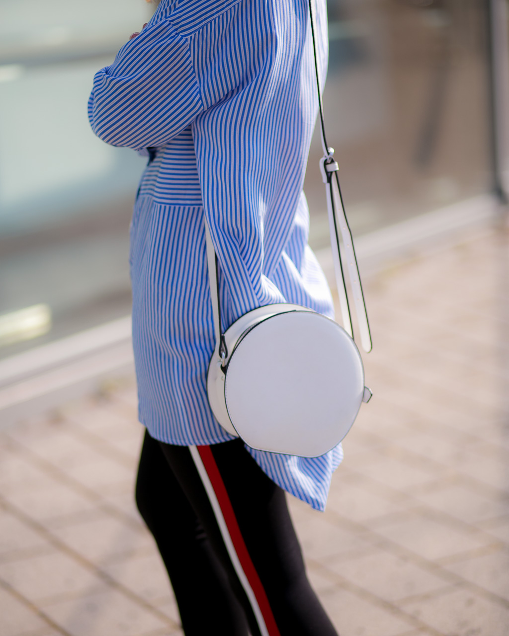 Bei der Kombination von Oversize Elementen müssen besonders kleine Menschen wie ich aufpassen, das wir nicht zu gestaucht wirken. Da helfen entweder Absatzschuhe oder eben Streifen, wie bei der Leggings. Dazu hab ich eine elegante Tasche und sportliche Sneaker gewählt, für einen optimalen Mix aus sportlich und chic. Wie gefällt euch der Look? Verratet es mir gerne in den Kommentaren, Eure Tiffy