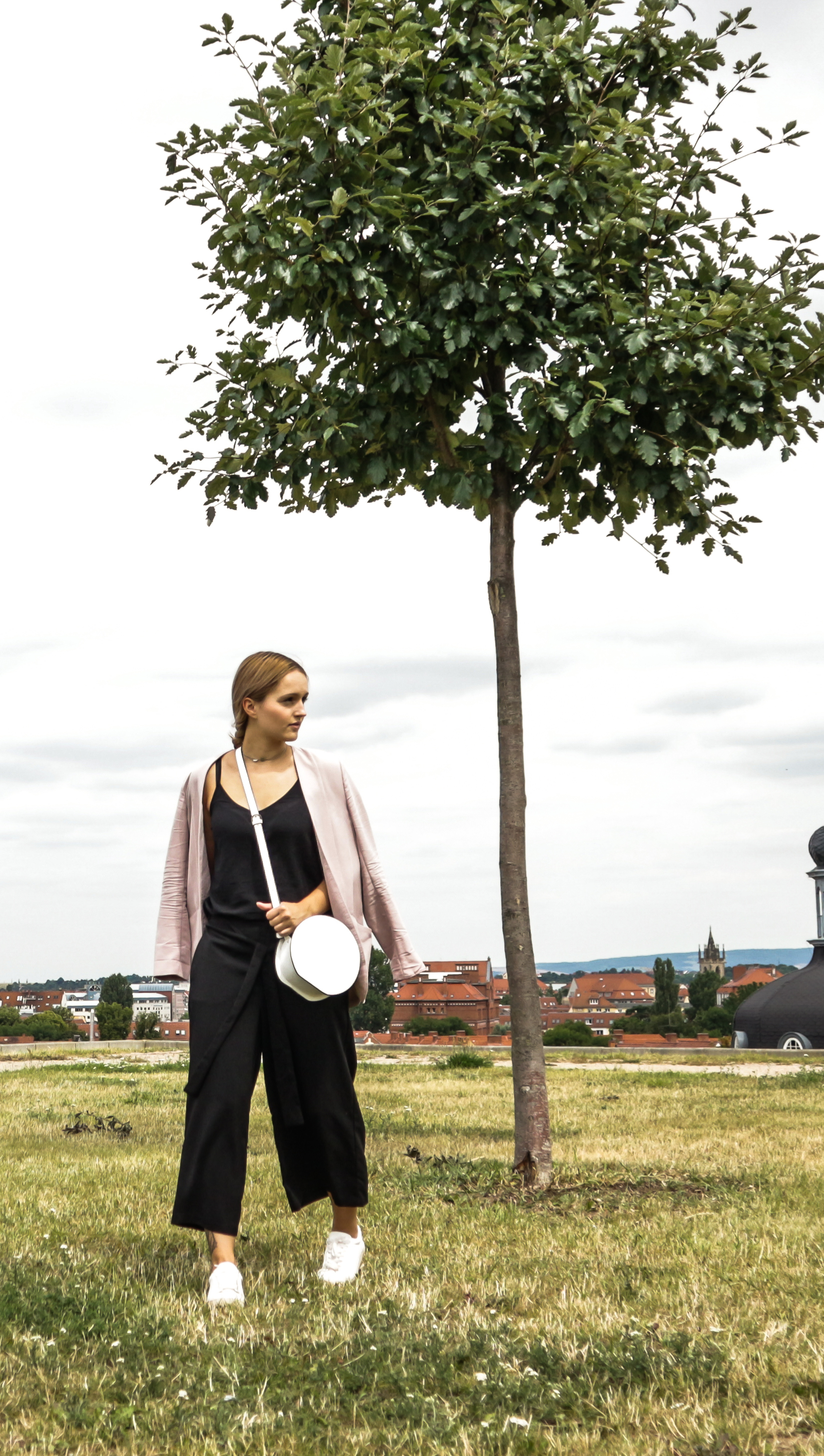 Ich hab meine Liebinghose die Culotte an, da sie stylisch und bequem zugleich ist. Der rosa Blazer und meine strenge Frisur lassen das Outfit nicht zu lässig wirken. Noch Sneaker dazu und los ging der kleine Spaziergang gegen Sommerfrust….. und die Cupcakes waren auch hilfreich 😉 eure Tiffy
